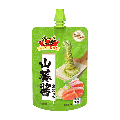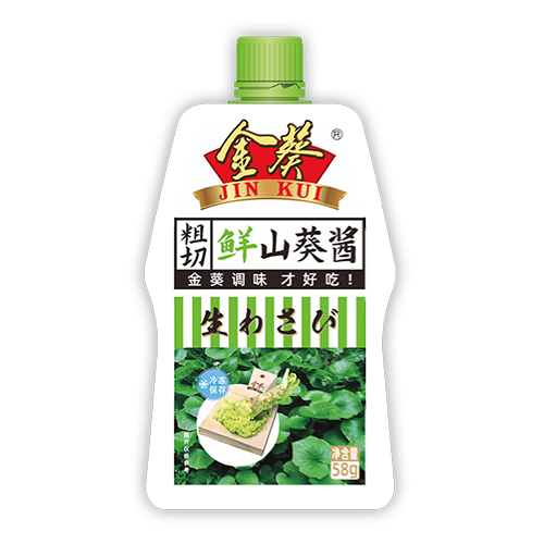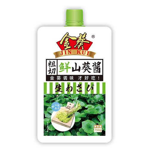 金葵鮮山葵醬口感柔和且細(xì)膩,粗切工藝還原原有味道,辛辣感消失后會變得清爽、香甜。